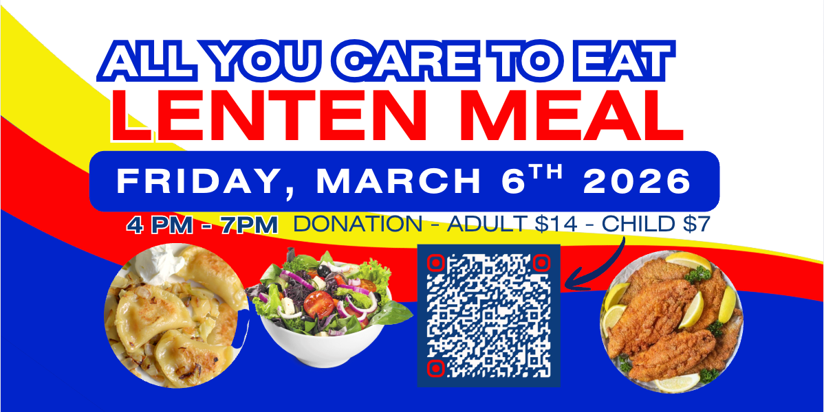 Nativity BVM Ukrainian Catholic Church invites the community to gather each Friday during Lent for its traditional Lenten Meals, offering a time for fellowship, reflection, and simple seasonal dining. Food will be available for purchase during each Lenten meal, with proceeds supporting the mission and ministries of Nativity BVM Church. Lenten meals hosted by Nativity BVM Church will be held on Fridays, February 20, February 27, March 13, and March 20.