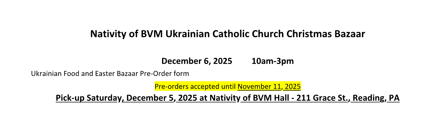 Nativity of BVM Ukrainian Catholic Church Christmas Bazaar 2025